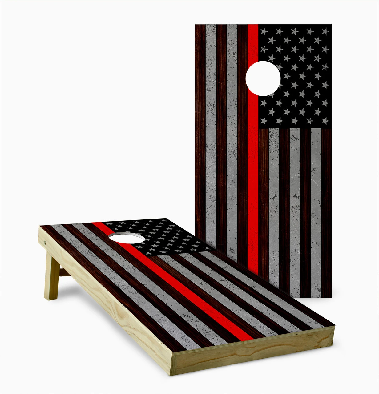 American Flag Burnt Wood Red Stripe Cornhole Set With Bags