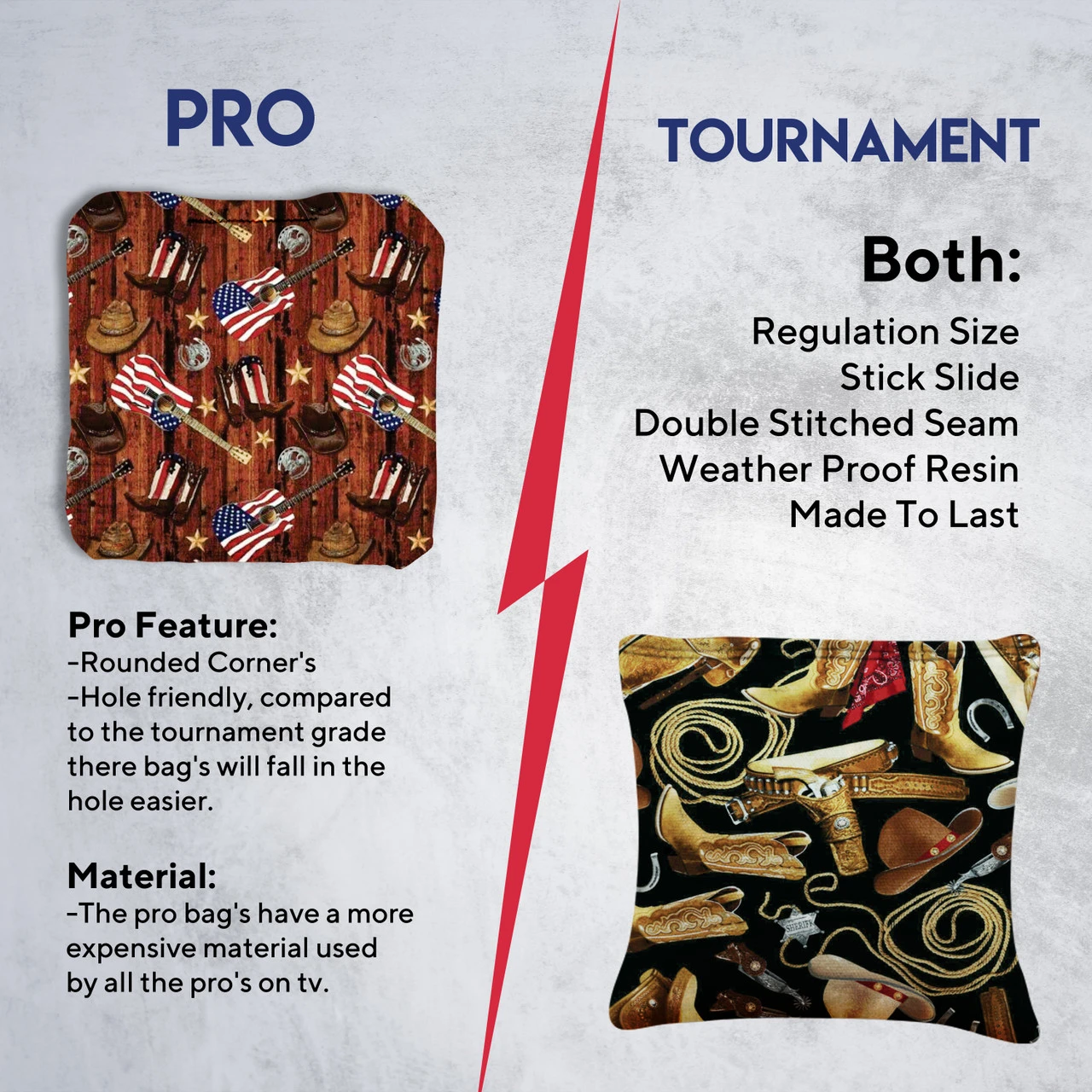 Professional Regulation Cornhole Bags’ dual-sided material construction advances playing strategy and control, allowing you to grab or glide on the board. With various graphic options available, sets can be mixed and matched to fit any style.