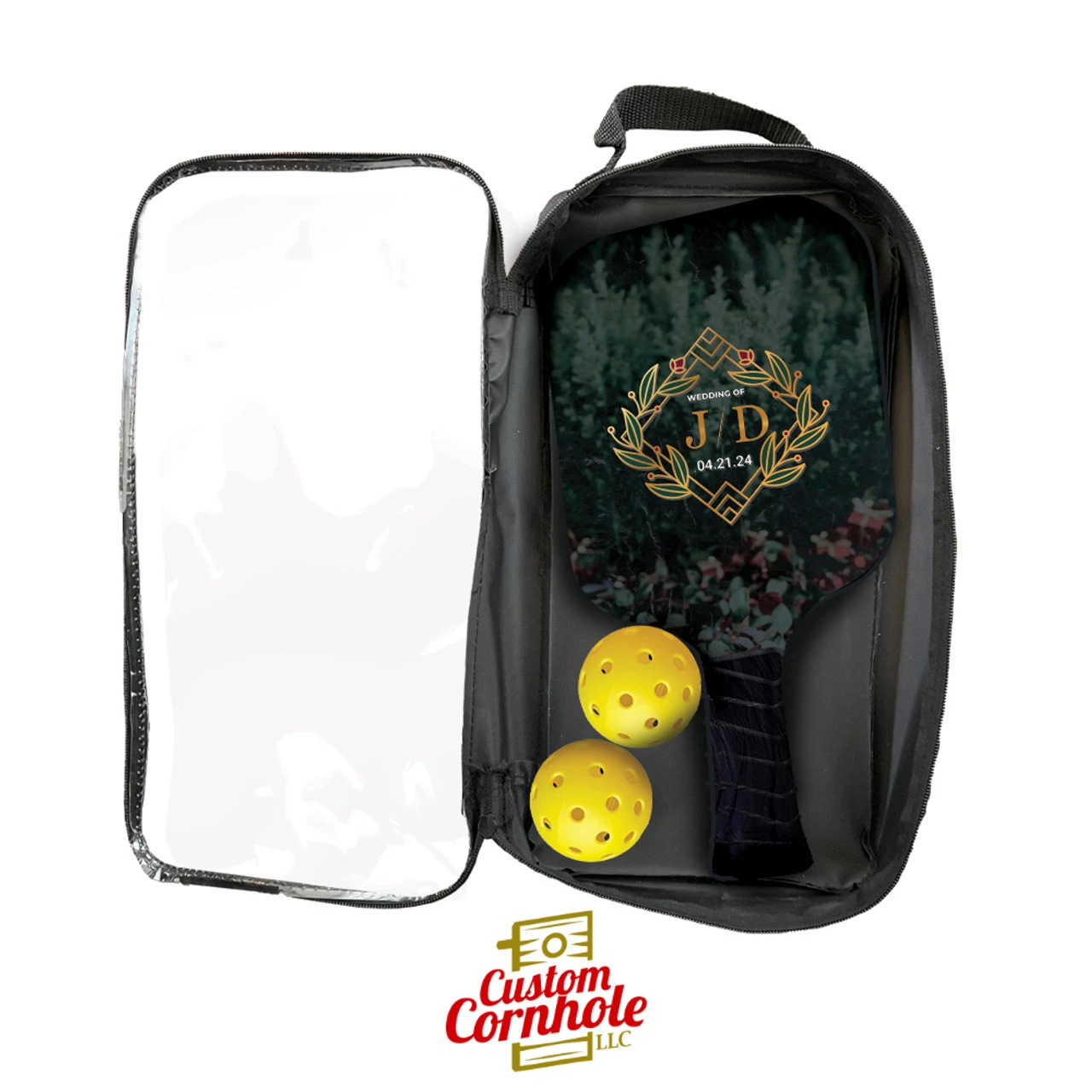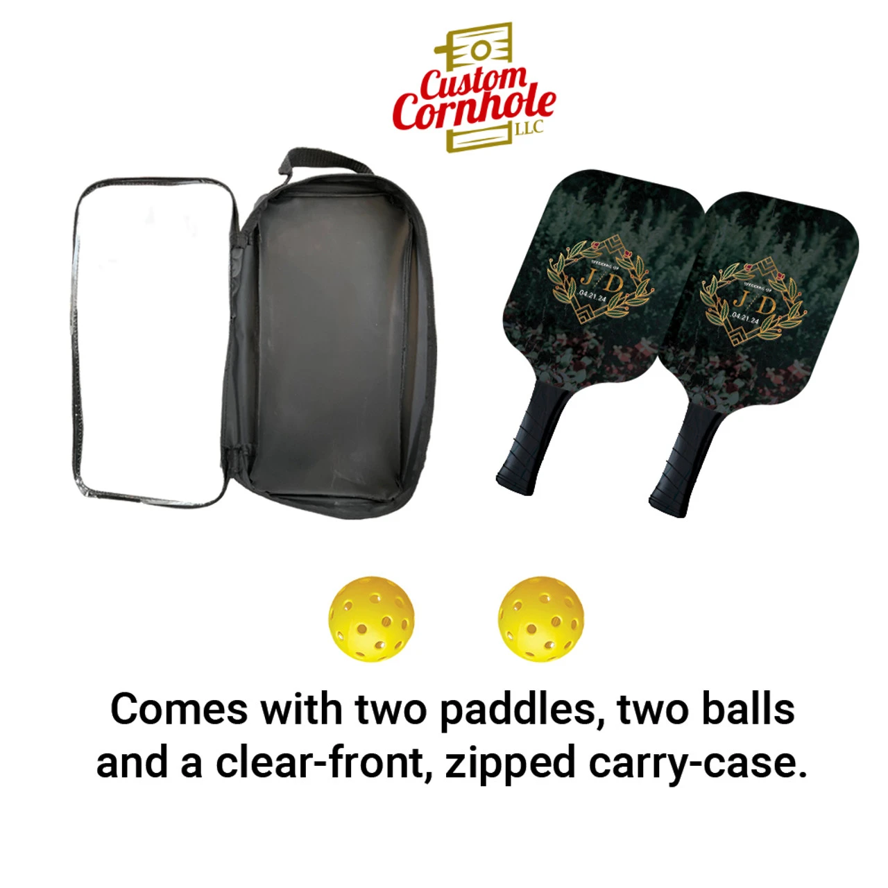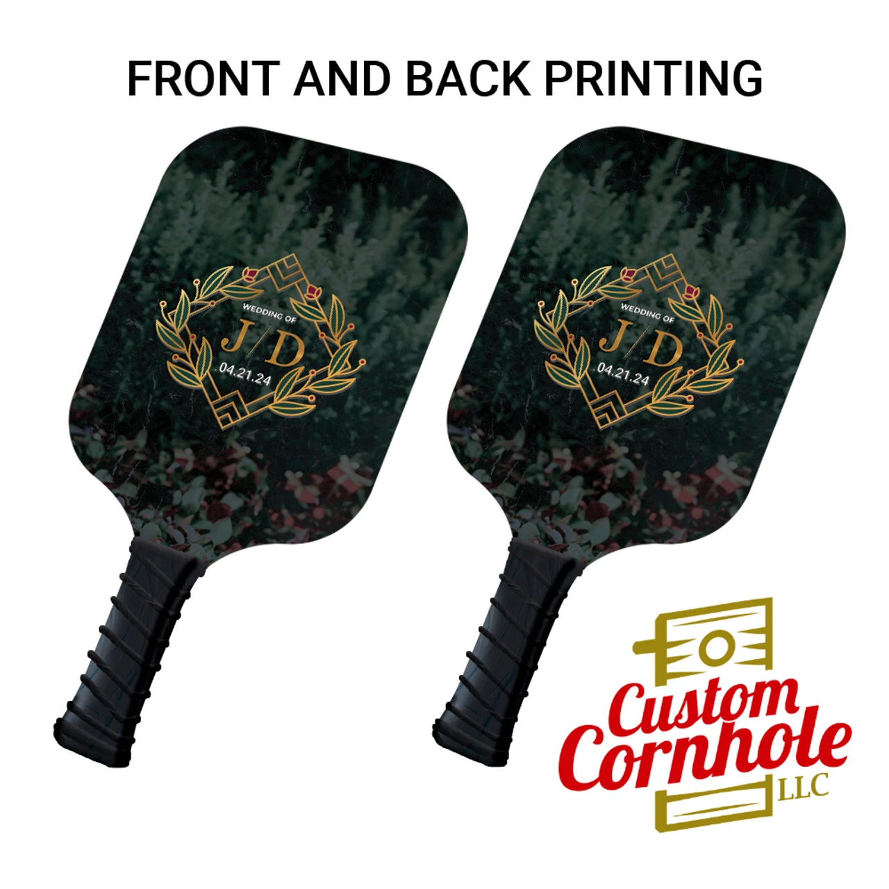 Custom Gold Flower Wedding Monogram And Date Pickleball Paddle Set